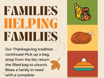 Our Thanksgiving tradition continues! Pick up a bag, shop from the list, return the filled bag to church by November 16th.